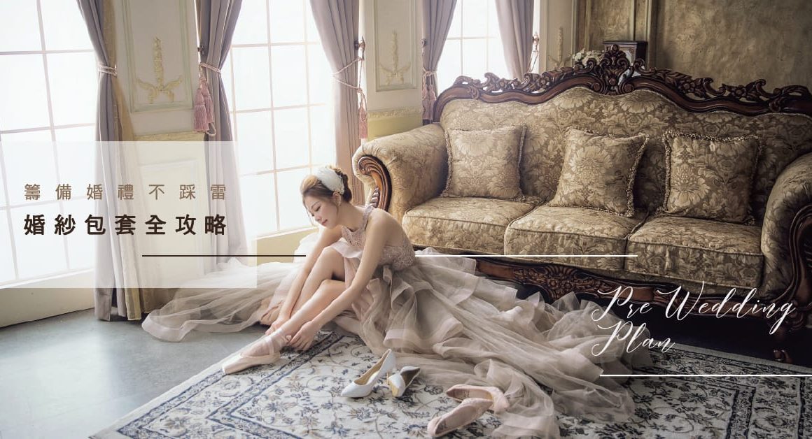 在各家的網站、粉絲頁,甚至是婚禮平台,都可以看到店家提供的婚紗包套內容,逛了一圈後你會發現其實方案內容都大同小異,只是商品的排列組合不同而已。(但認真看的話,其實還是可以發現婚紗照作品風格跟禮服設計質感的差異~)
